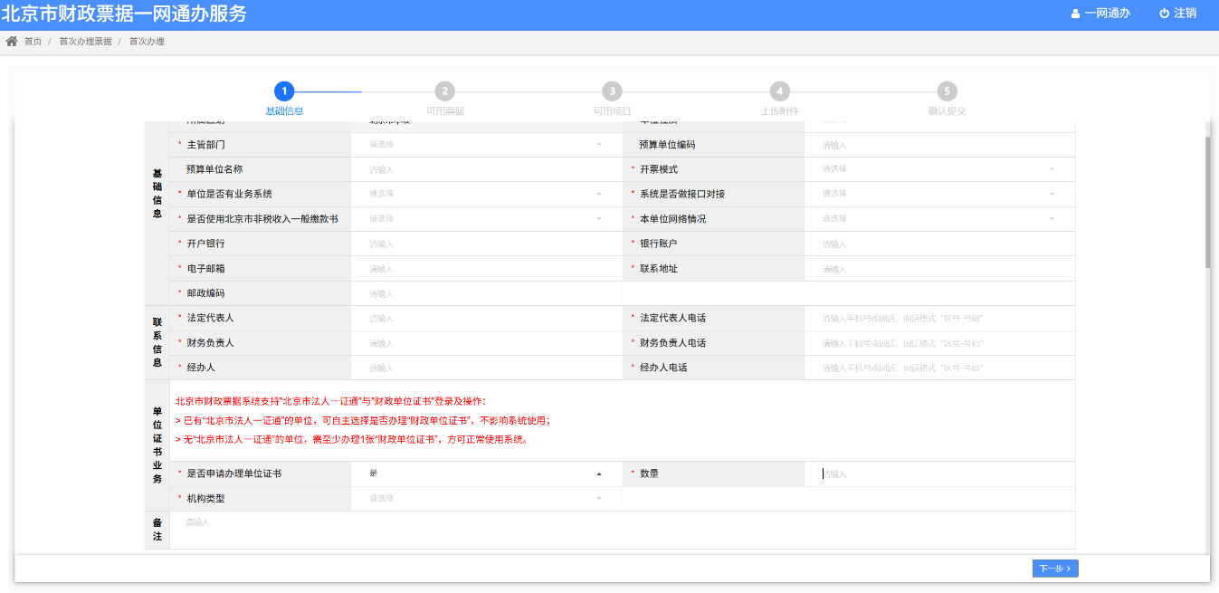 2.填写基础信息后、可用票据信息、可用项目并上传附件后,完成提交